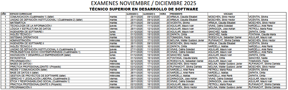 Exámenes Noviembre – Diciembre 2025