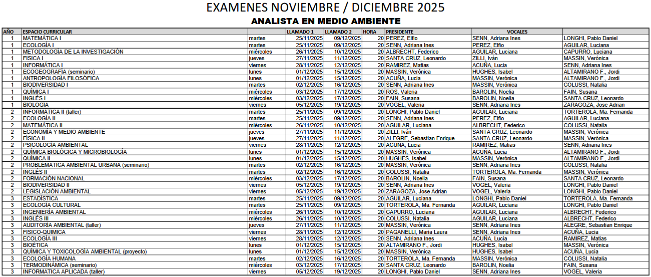 Exámenes Noviembre – Diciembre 2025