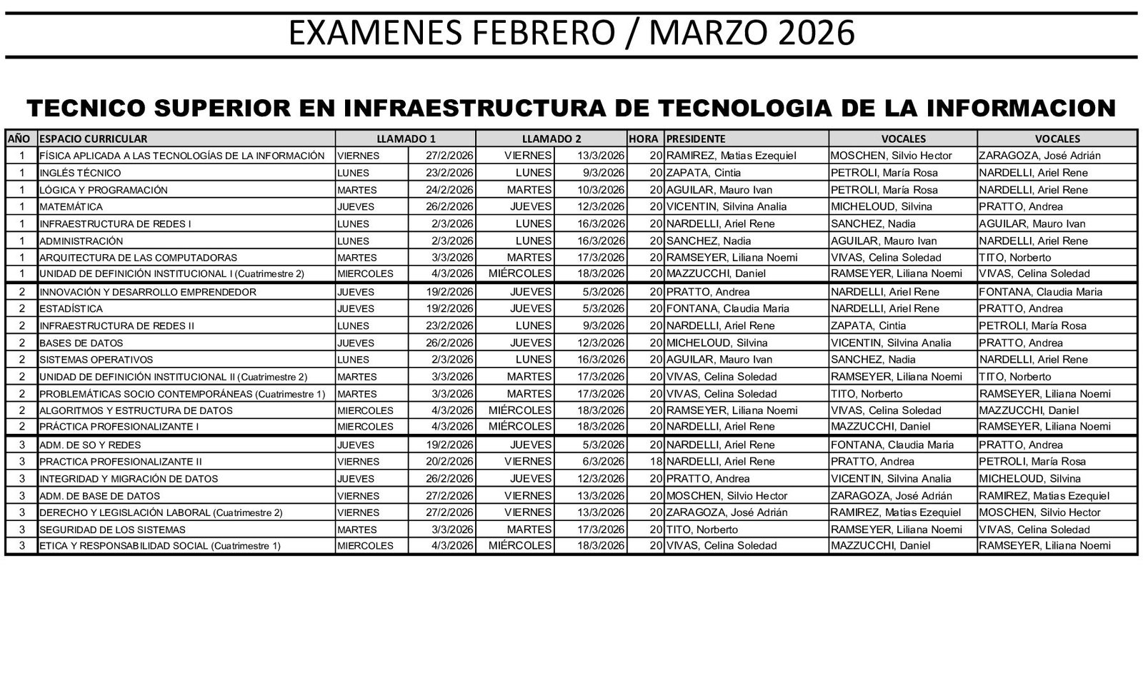 Período de exámenes: 19/02 al 20/03.